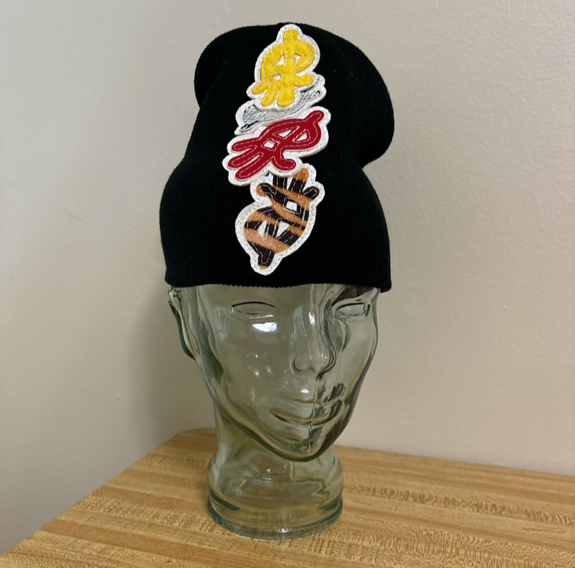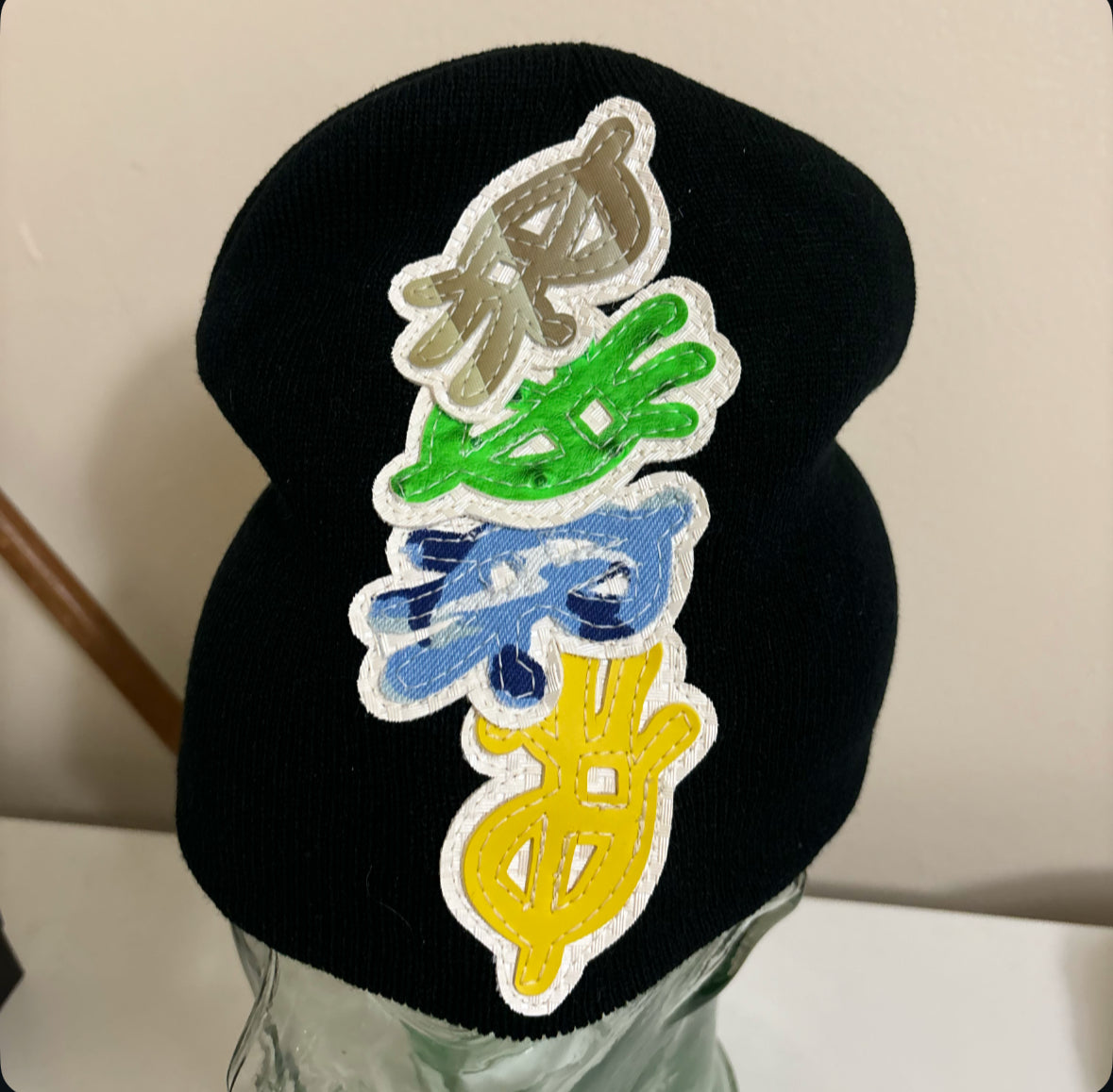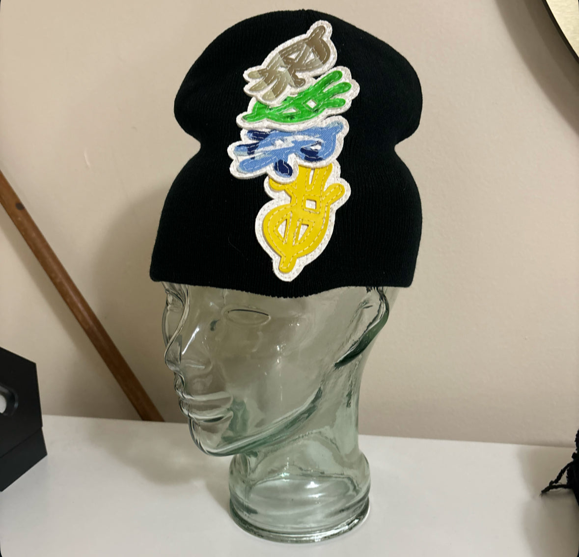 every beanie will be different w/ random colored logos